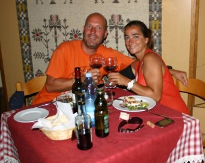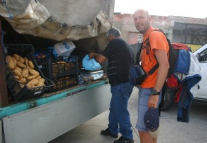 bajamos a tierra para intentar comprar algo fresco en el pueblo de Teulada y buscar algún sitio donde poder comer, tenemos que celebrar los dos años!!!! (esto si que es una luna de miel) y mañana estaremos ocupados con las velas y las olas….. Finalmente encontramos en la carretera un camión de venta ambulante de fruta y verdura dónde cargamos todo lo que cabe en la mochila.