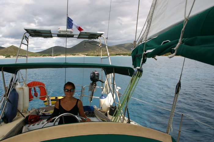sus tripulantes Joan, Joan y acompañándolos Eva y Joan Vicenç en ese tramo. Son de Palma de Mallorca y llevan más de un año recorriendo el Mediterráneo y ahora se encuentran en el viaje de regreso. Acabamos cenando unas fantásticas Pizzas en el barco regadas con buen vino y risas, al día siguiente repetiremos.El 28 de Agosto, con la despensa llena y la pena de la despedida salen ellos hacia Menorca y nosotros navegamos la increíble distancia de 4,5 millas para fondear en una bonita playa pasado Capo Nero, Spiaggia Guidi, estamos solos en un sitio precioso con la Mar plana y sin viento.