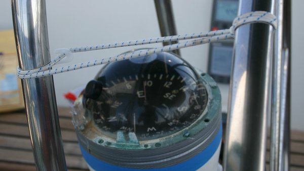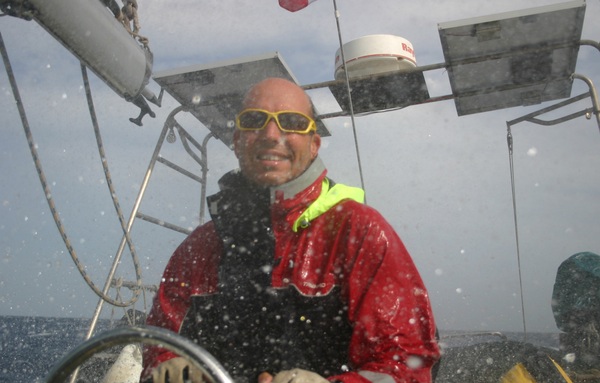 elta a Stromboli para arrumbar hacia Vulcano que se ve humeante en el horizonte. Ya que nuestro piloto Raymarin 6000+ ha decidido tomarse unas vacaciones utilizamos el de respeto que compramos en los chinos por 0,5€, se trata del Raymarin 0.0, para nosotros “Capitan Gomiti”, al que comenzamos a enseñar a navegar por estos mares. Con vientos de ceñida y través aguanta bastante bien, de empopada y con motor es un desastre…. pero nos da un respiro al timón.
