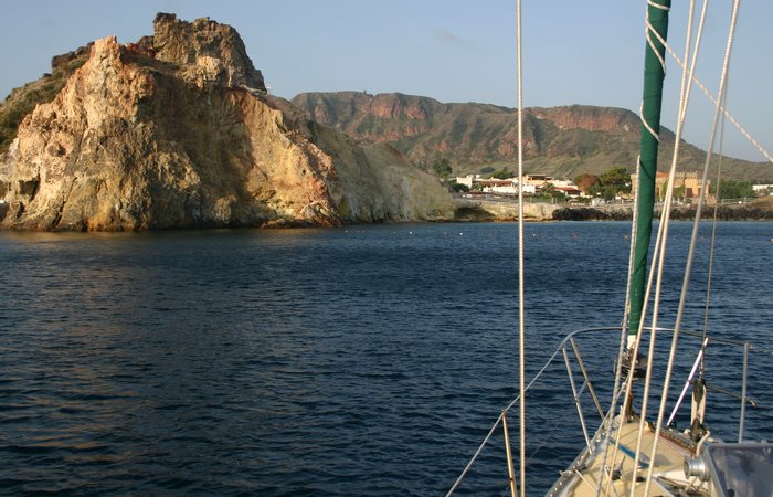 Cruzamos el canal y cuando ya estamos en la costa de Lipari nos encontramos al Tetamanu que viene directo desde el fondeo de Salina. Juntos avanzamos hasta Lipari donde encontramos unas
