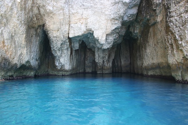 La mañana del 29 de Julio nos levantamos con calma y desayunamos, ayer vimos en el pueblo fotos de las cuevas al oeste de la isla, ese será nuestro objetivo para hoy. Levamos ancla y salimos sorteando los veleros fondeados, pasamos los escollos que bordean el cabo Nordoeste de la isla siguiendo a un lugareño y comenzamos a descender la costa. A escasas dos millas y entre unas paredes verticales de más