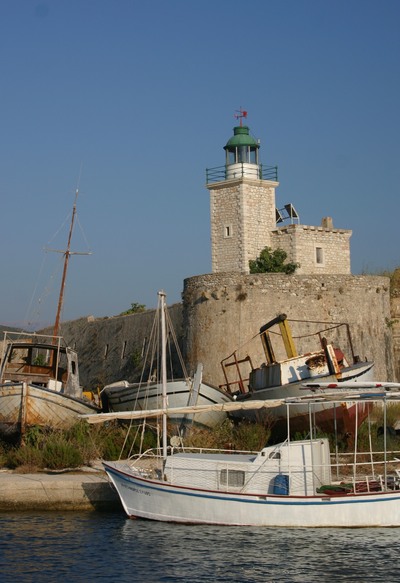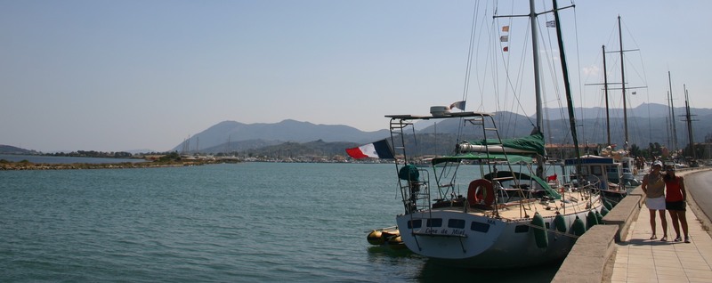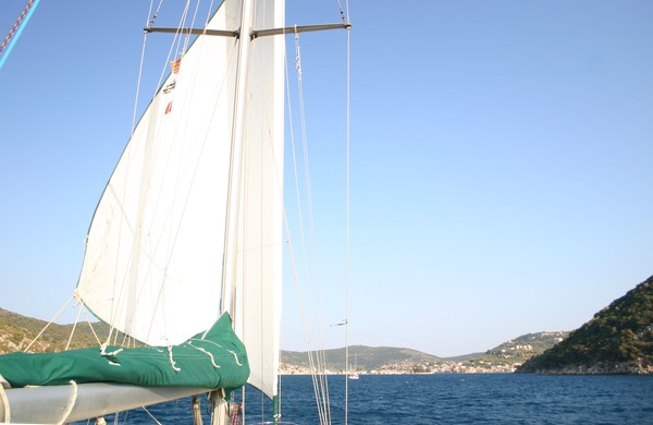 . Ellos vienen de Malta y comienzan su periplo por el Jónico dirección Sur, nosotros vamos hacia el Norte. Aprovechamos la escala para reabastecernos. También labores de mantenimiento, el Lune de Miel recibe guardamancebos nuevos y subo a su mástil ya que tienen problemas con la luz de fondeo, también le repaso los cables eléctricos y su cuadro de fusibles, yo ya tengo el master hecho en eso.El 11 de agosto levamos ancla de ésta acogedora rada y nos despedimos de sus gentes y de los miles de mosquitos que por aquí pululan. Salimos dirección al Continente, un fuerte viento del Norte nos hace correr hacia el Este y llegamos pronto al otro lado.