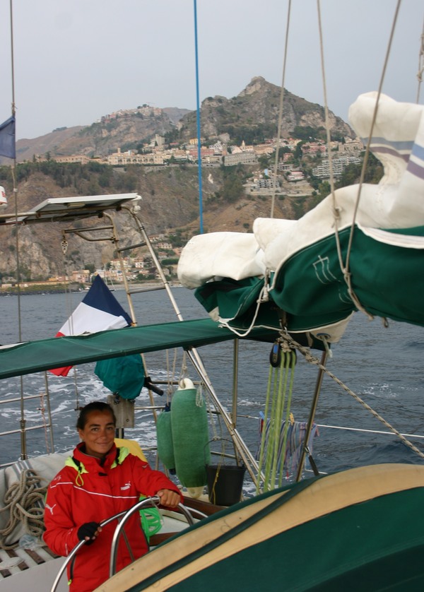 Trimamos las velas, ajustamos el rumbo y nos disponemos a cruzar hacia Taormina, Sicilia. Estamos ciñendo a 6 nudos con puntas de 7. El sabor a café y pan tostado ha desaparecido de nuestras bocas, sólo queda sal.