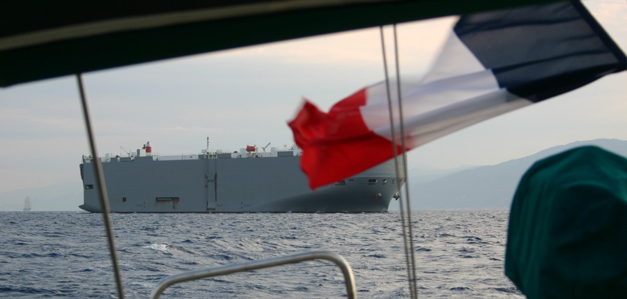 verdad es que estamos a la espectativa. Las últimas horas de viaje acompañados de grandes cargos en todas direcciones, ahora completamente solos. Tenemos la meteo (en todos los partes consultados, esta vez los hemos mirado todos) a nuestro favor. No nos fiamos y encendemos el motor al ralentí por si lo necesitamos, está calentito y presto a ayudar. Entramos.